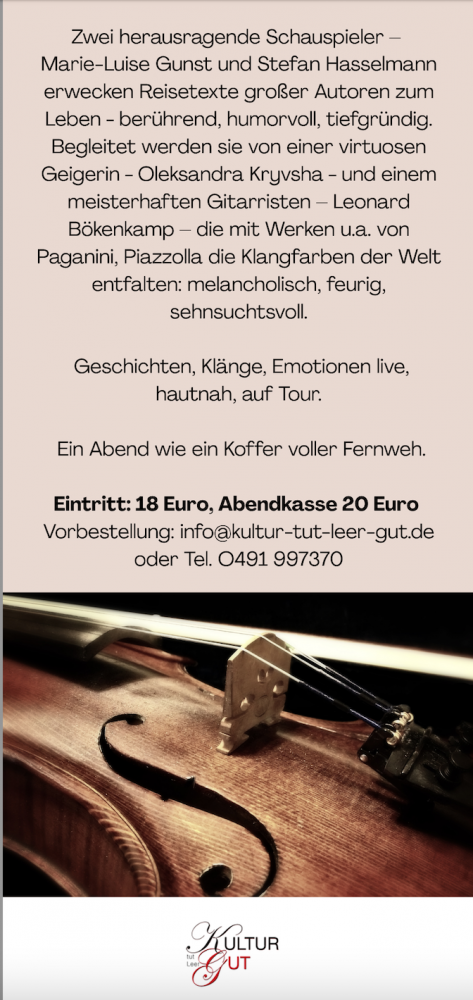 Vorbestellung: info@kultur-tut-leer-gut.de